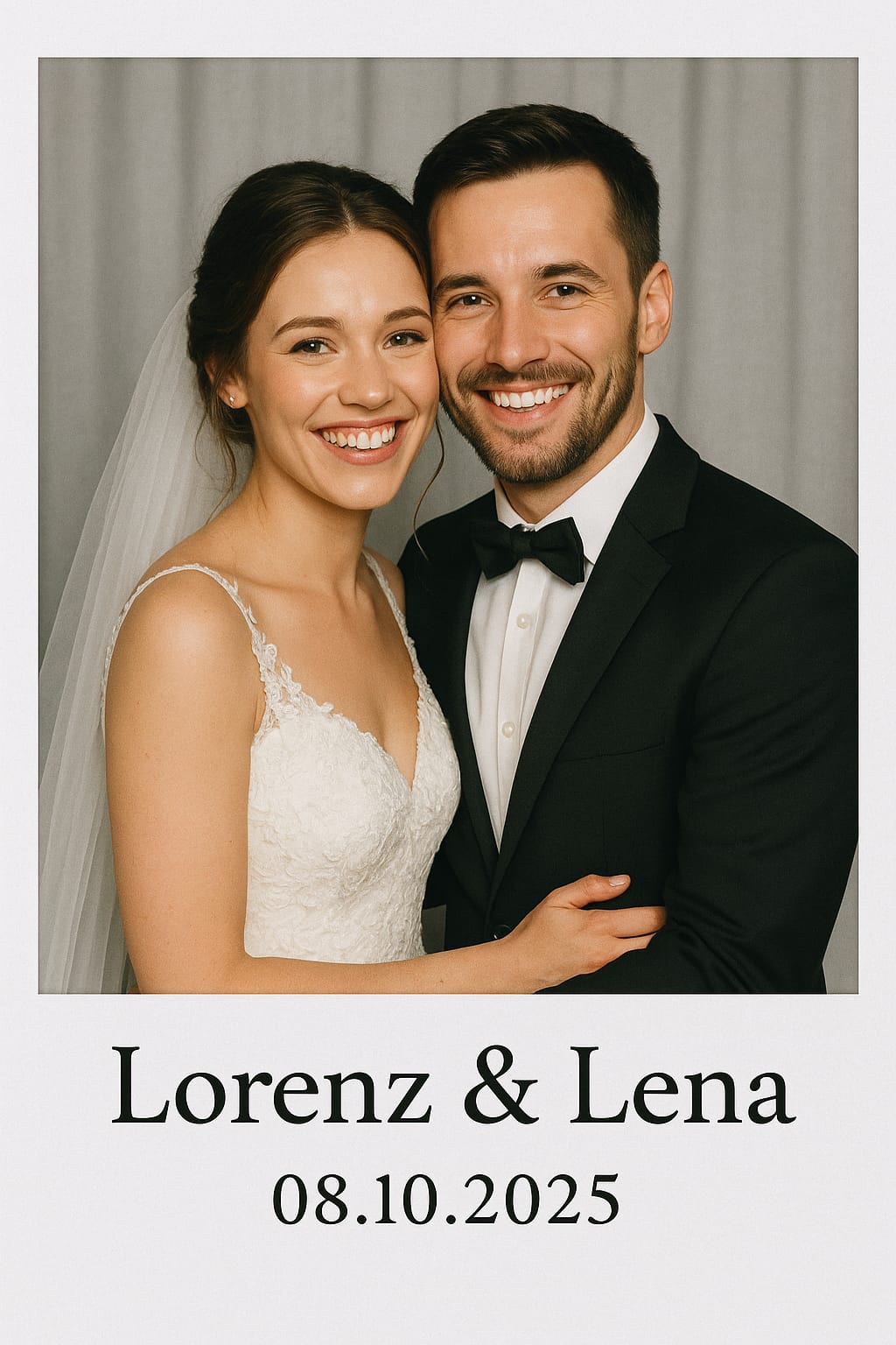 Darüber hinaus lassen sich die Fotos perfekt in ein Fotobuch / Erinnerungsbuch einkleben. Die Gäste können neben ihrem Foto persönliche Botschaften, Glückwünsche oder kleine Sprüche hinterlassen. So entsteht ein lebendiges Hochzeitsalbum, das nicht nur die Stimmung des Tages einfängt, sondern dem Hochzeitspaar selbst noch lange nach der Feier die schönsten Momente zurückbringt.